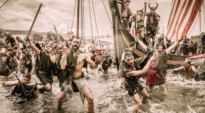 Na primeira fin de semana de agosto catro drakkars (embarcacións viquingas) chegan a ría de Arousa e intentan tomar terra na localidade de Catoira, onda o pé das vellas Torres do Oeste a poboación nativa tenta impedir o desembarco. Cando xa pasou máis dunha semana da Romaría Viquinga semella que non paga moito a pena falar deste feito, neste mundo onde a información ten que chegar ao público case ao momento de estar ocorrendo o suceso en si, mais neste caso para min non vale ese dito de “pasado o día pasou a romaría” xa que considero que a historia recreada nesta festa é de moito interese, e calquera día é bo para falar dela. Esta celebración, que xa leva case 60 anos celebrándose, recrea as numerosas campañas que cada verán os piratas normandos realizaban nos países cristiáns. De sobra son coñecidas as incursións que fixeron en Francia ou Inglaterra, series televisivas modernas coma Viquingos baséanse nas aventuras dos escandinavos naquelas terras, pero o certo é que Galicia foi un enclave de atracción para estes pobos que denominaban ao noso país coma Jacobsland (Terra de Santiago).