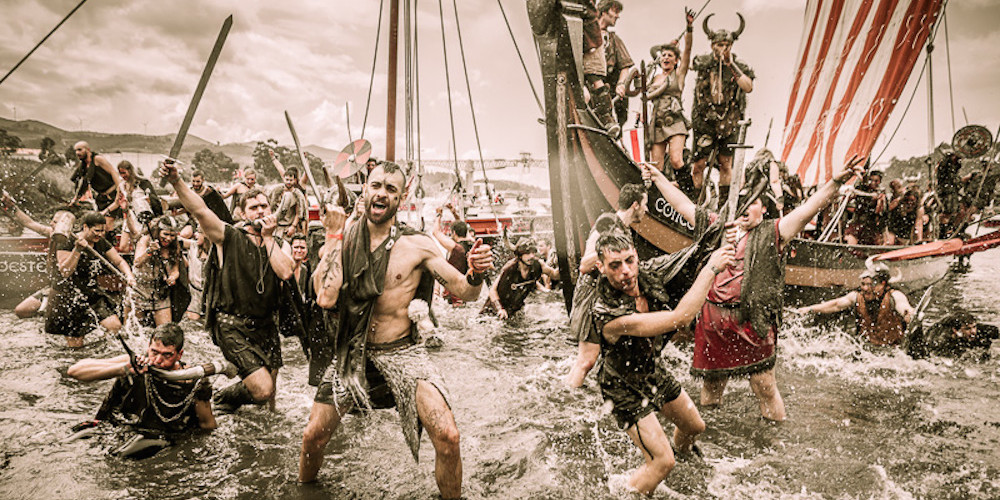 Desembarco Vikingo de Catoira 13 agosto, 2016 1000 × 500 JACOBSLAND, UNHA ROMARÍA VIQUINGA Romería Vikinga de Catoira, Rias Baixas, Galicia by machbel