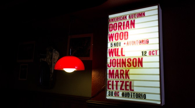 D.P. Dorian Wood (5 de Novembro no Auditorio Municipal de Ourense) es un tío que ha nacido en Los Angeles, es mitad de Costa Rica, mitad norteamericano, viene del arte, del arte contemporáneo, ya que además de ser artista, ilustrador y escultor, es cantante, tiene un proyecto que es brutal. Es como una mezcla rara entre Nick Cave y Violeta Parra. Sobre el escenario es un torbellino, además es un tío muy grande, canta en castellano e inglés, y viene con una formación de piano, contrabajo, batería… Es lo más arriesgado junto con Swans. (Swans actuaron o 7 de outubro na Sala Capitol en Santiago de Compostela, sendo este o primeiro é único concerto do American Autumn na capital galega, até o momento).